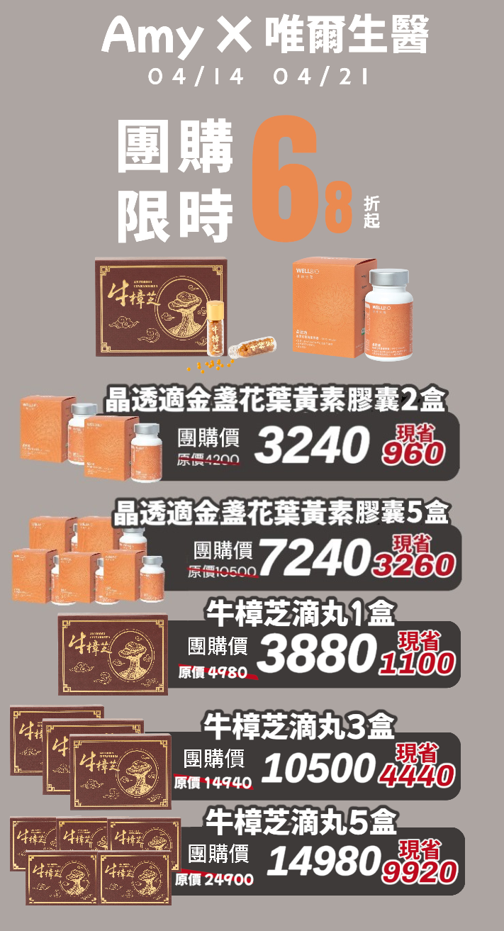 【Amy X 唯爾生醫】限時團購68折UP|開團時間:04/14-04/21